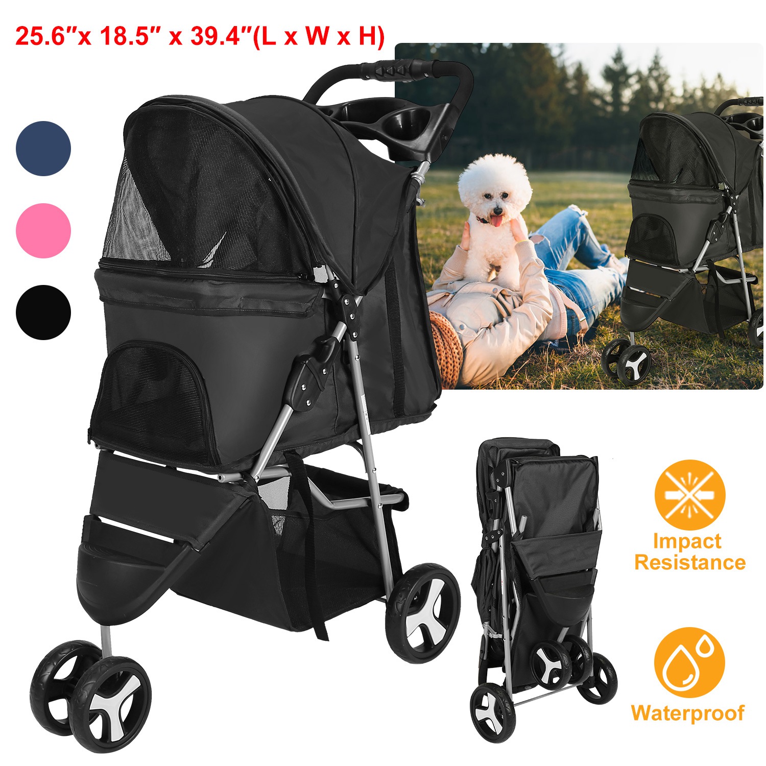 3 Wheels Pet Stroller Foldable Carrier Strolling Cart Travel Jogger Pet Stroller with Removable Liner Storage Basket for Dog Cat