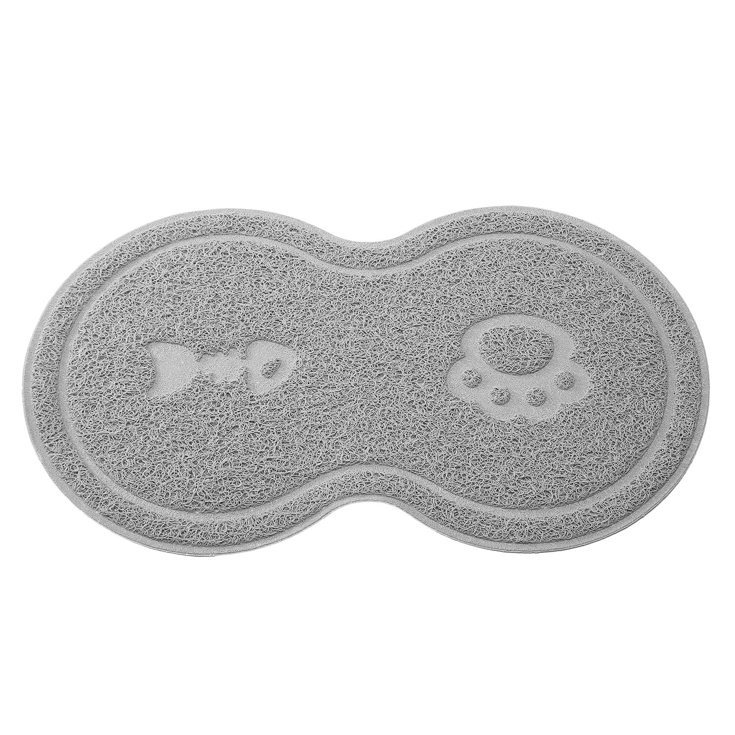 Our pet feeding mat adopts food-grade dense ring-shaped PVC fiber materials, non-toxic, soft, sturdy, durable, abrasion resistance and meantime, can grip the litters tightly to avoid any mess. Overspreading floor-friendly textures and suctions on its back, it is non-slip. It has multiple functions to be used as placemat, litter catcher mat, indoor or outdoor welcome mat, etc.