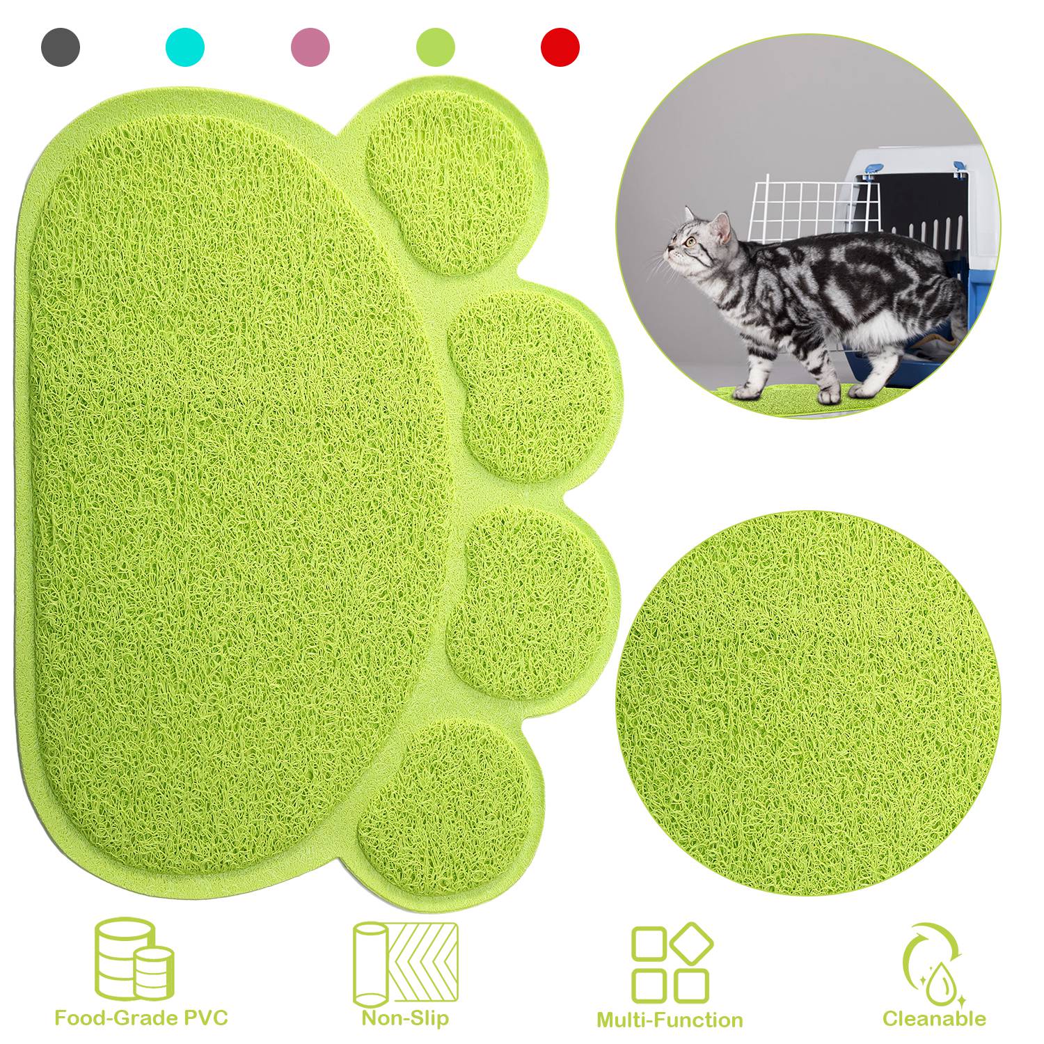 Our pet feeding mat adopts food-grade dense ring-shaped PVC fiber materials, non-toxic, soft, sturdy, durable, abrasion resistance and meantime, can grip the litters tightly to avoid any mess. Overspreading floor-friendly textures and suctions on its back, it is non-slip. It has multiple functions to be used as placemat, litter catcher mat, indoor or outdoor welcome mat, etc.