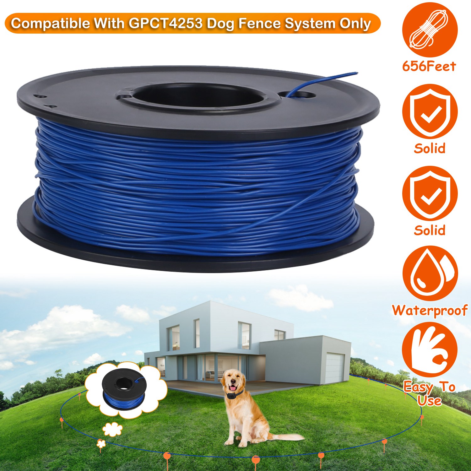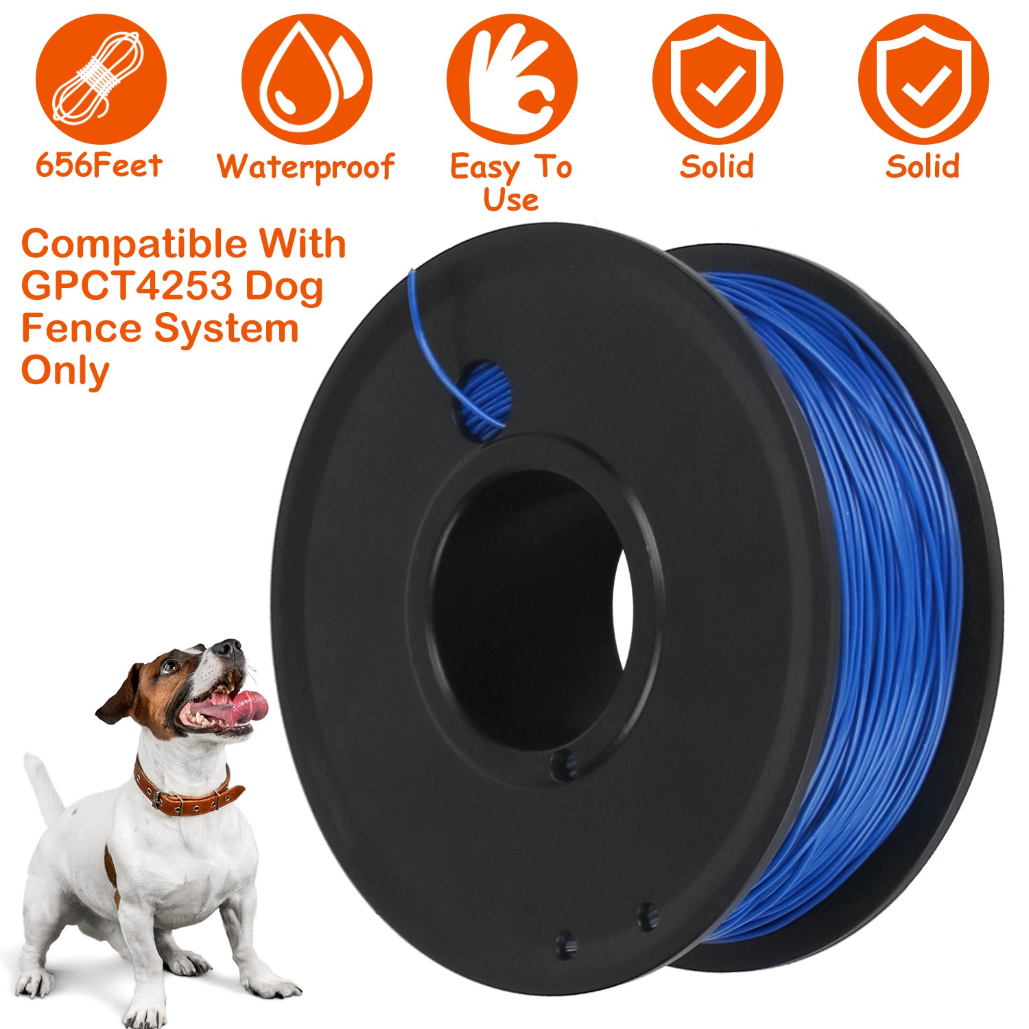 Our boundary wire is 656 feet long, which helps create an effective signal field with our GPCT4253 dog fence system to deter our dogs from the designated area, which greatly ensures our pets’ safety. Buried underground, no physical barriers, greatly prevent the uneasiness of our dogs. Solid and waterproof, widely used for dog training.